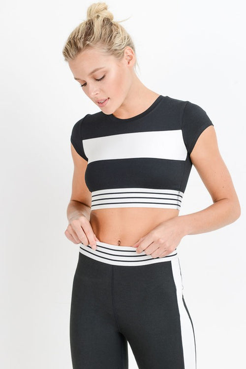 Color Block Striped Active Crop Top