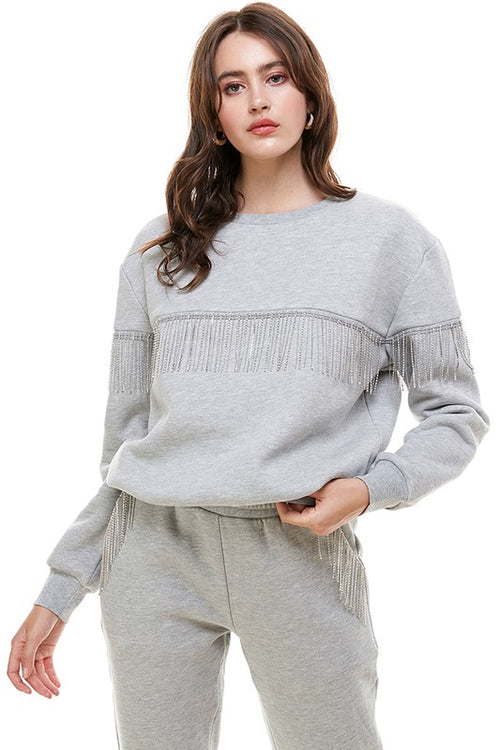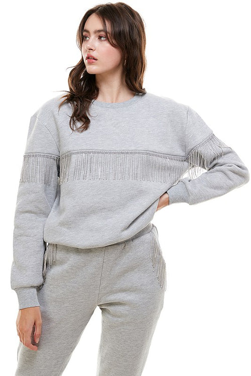 Rhinestone Fringe Sweatshirt