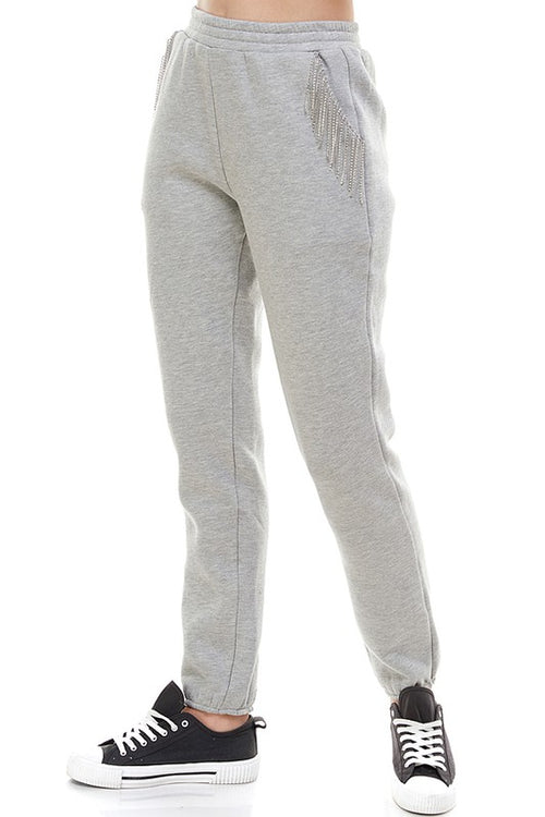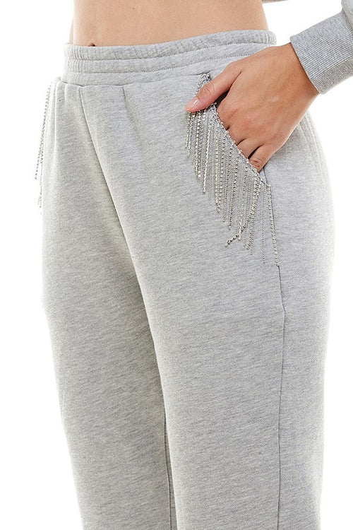 Rhinestone Fringe Sweatpants