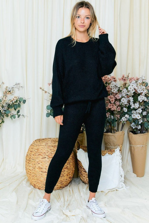 You've Met Your Match Black Knit Lounge Set