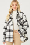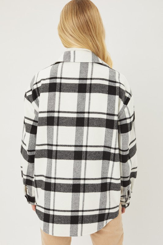 This black and white plaid shacket is the essential layering piece you have been looking for this season! Made from a soft and thick material, this versatile piece can be worn buttoned as a shirt or open as a jacket. Features buttons up the front, chest pockets and a relaxed fit.