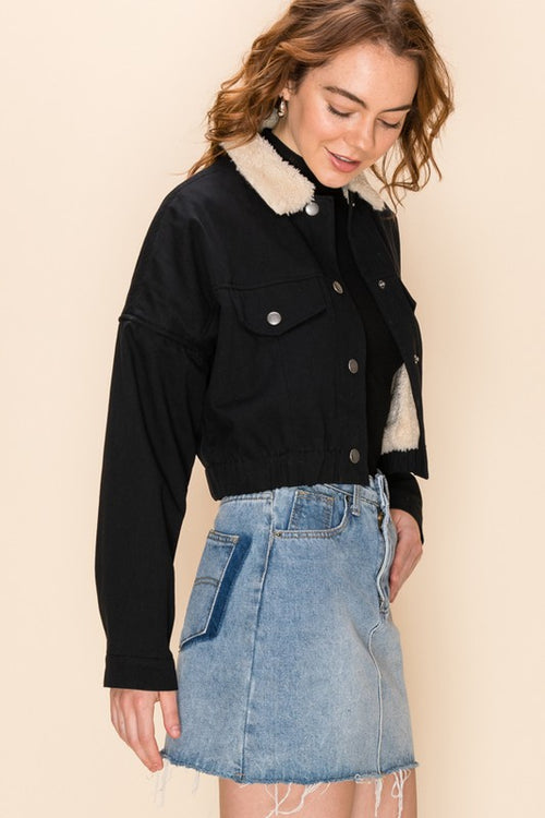 Fur-get About It Fur Lined Crop Jacket - Beige