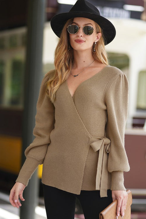Wear Anywhere Drawstring Waist Surplice Knit Jumpsuit