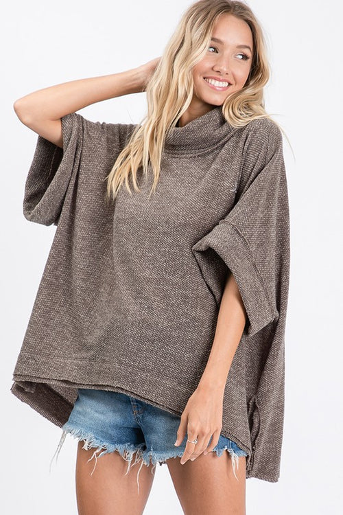 Wide Roll Up Sleeve Boxy Knit Sweater