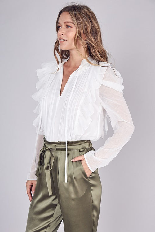 Ruffle Your Feathers Ruffle + Pleated Blouse
