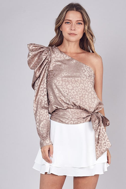 Runnin Wild Leopard Print Balloon Sleeve Knit Waffle Top