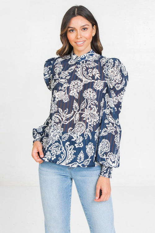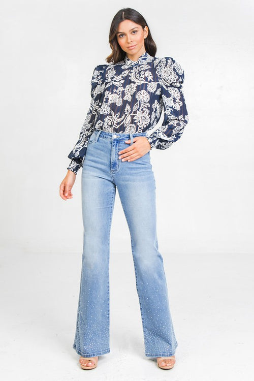 Cinch Puff Shoulder Mock Neck Bodysuit