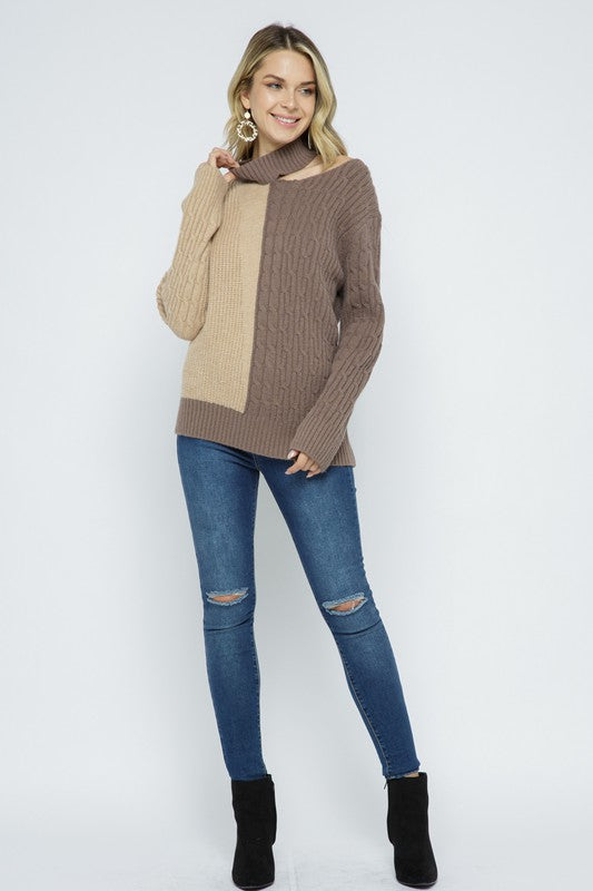 A cute and cozy choice for effortlessly chic looks all season long! We love the mixed colors, one sided turtleneck and super soft feel.